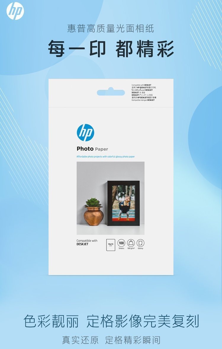 惠普 (HP) 光面相纸 - 100 张/10 x 15 厘米