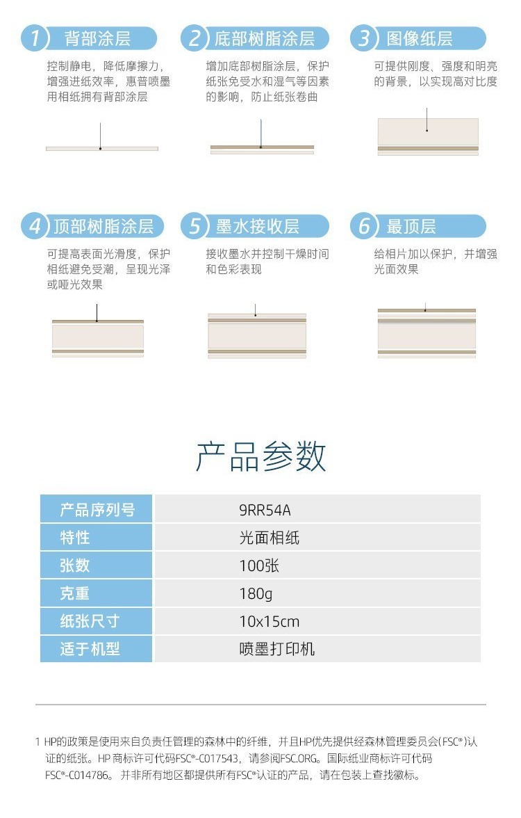 惠普 (HP) 光面相纸 - 100 张/10 x 15 厘米 - (9RR54A)