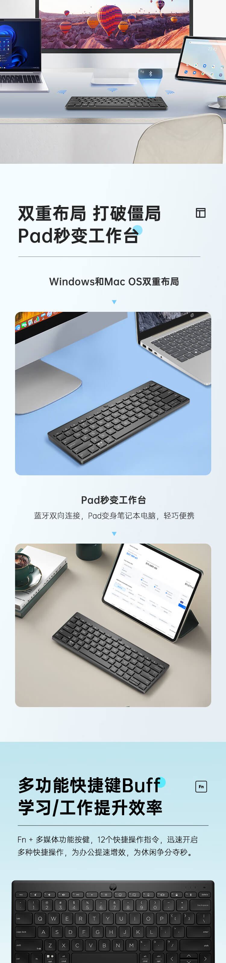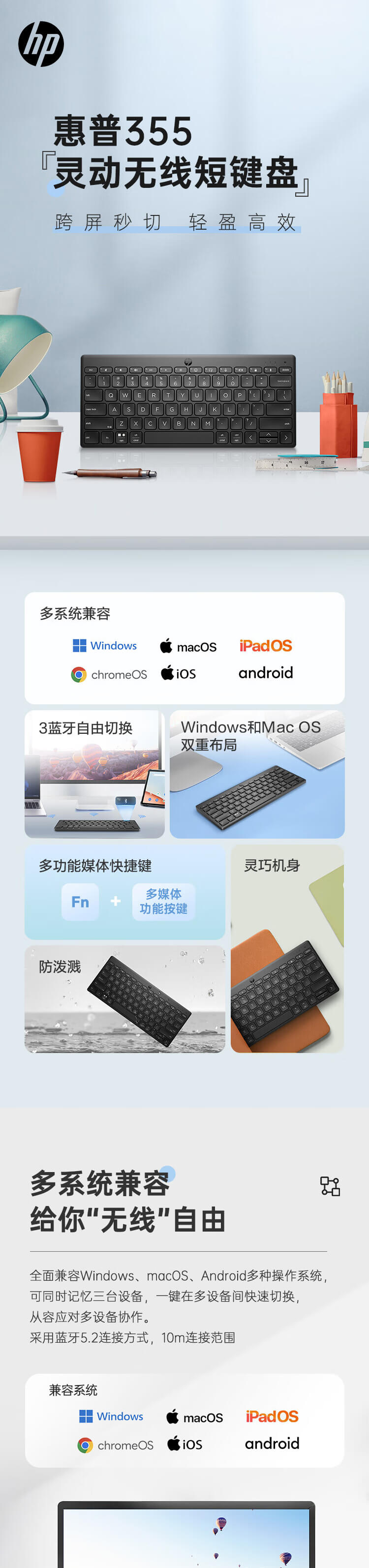 惠普 (HP) 355 多设备蓝牙迷你键盘