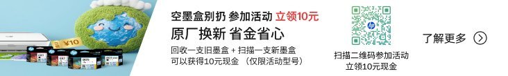 大部分惠普原装墨盒由回收的旧墨盒和其他塑料制品中的可再利用材料制作而成,在打印的同时助力环保。*