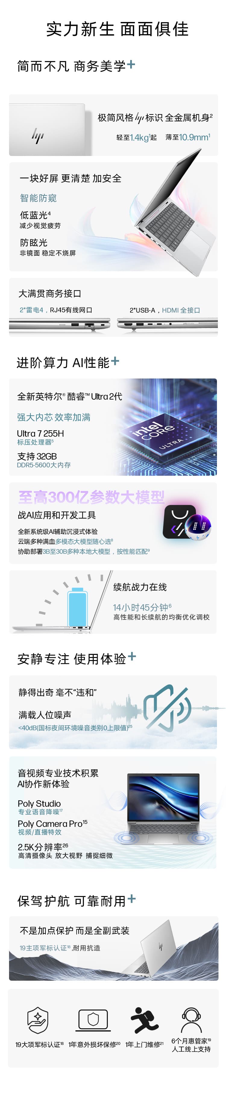 惠普 (HP) 战66+ 14英寸商务笔记本电脑 - 银色 + 惠普笔记本电脑 3 年上门服务
